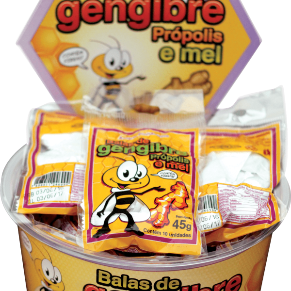 Display Bala de Gengibre com Mel e Própolis – 25 pacotes de 45g