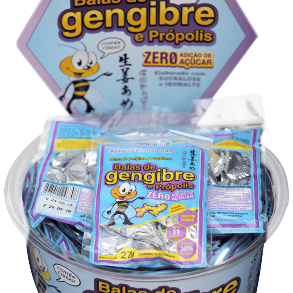 Display Bala de Gengibre com Própolis Zero Açúcar – 20 pacotes de 27g